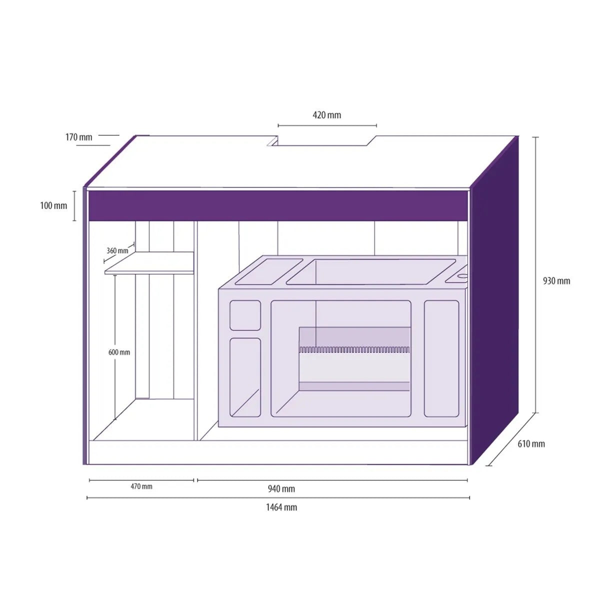 - Cabinet - 59.1"L x 25.6"W x 37"H